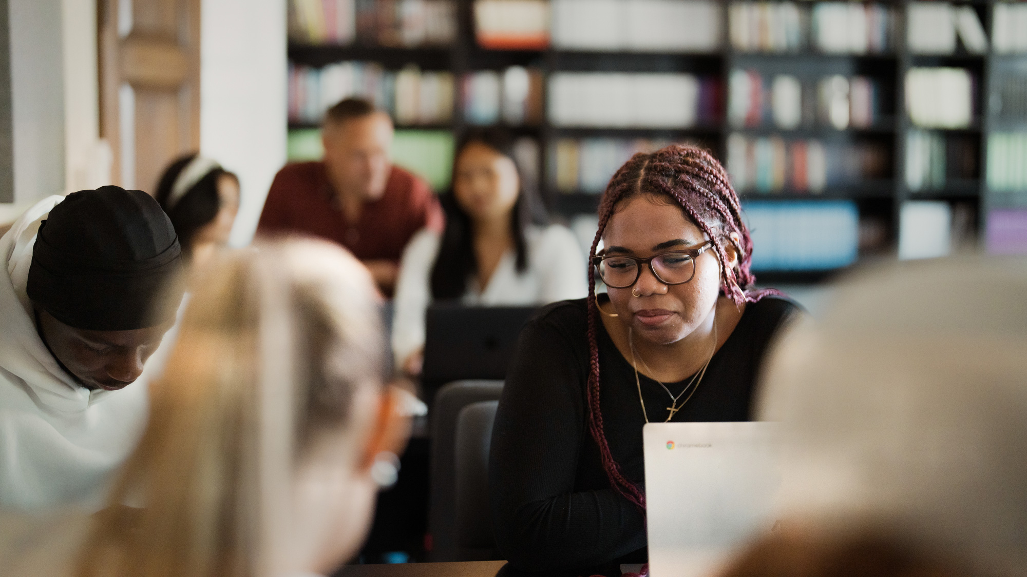 Vårt skolbibliotek är en självklar del av vardagen. Här möter du möter litteratur och digitala kunskapsresurser där de befinner sig – i samma ljusa lokaler där du studerar, diskuterar och tar en paus. Vi tror på tillgänglighet framför avskildhet.